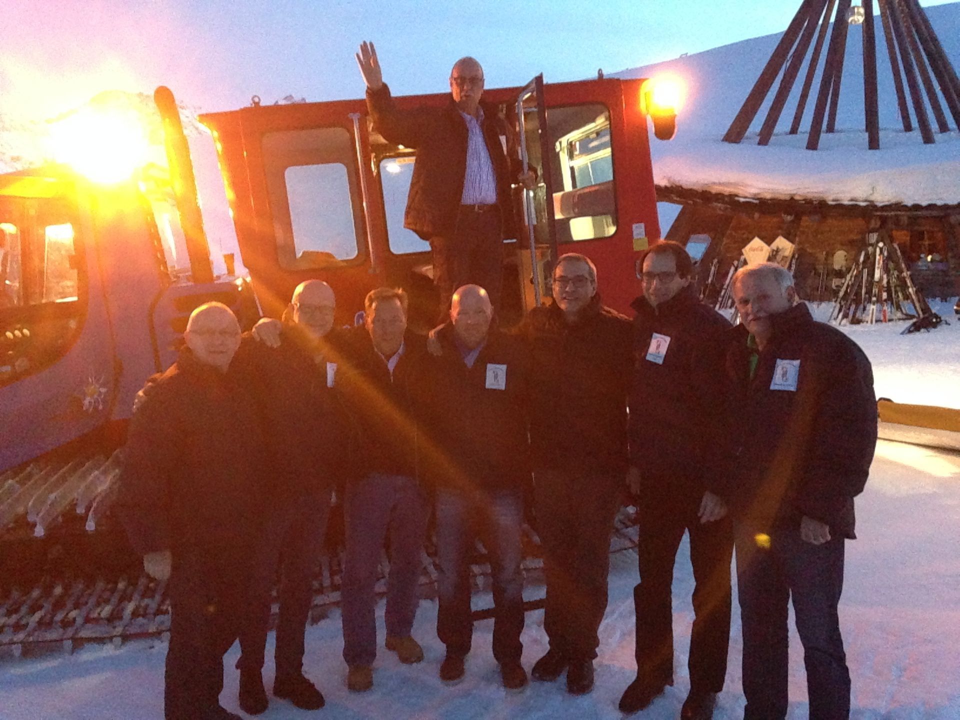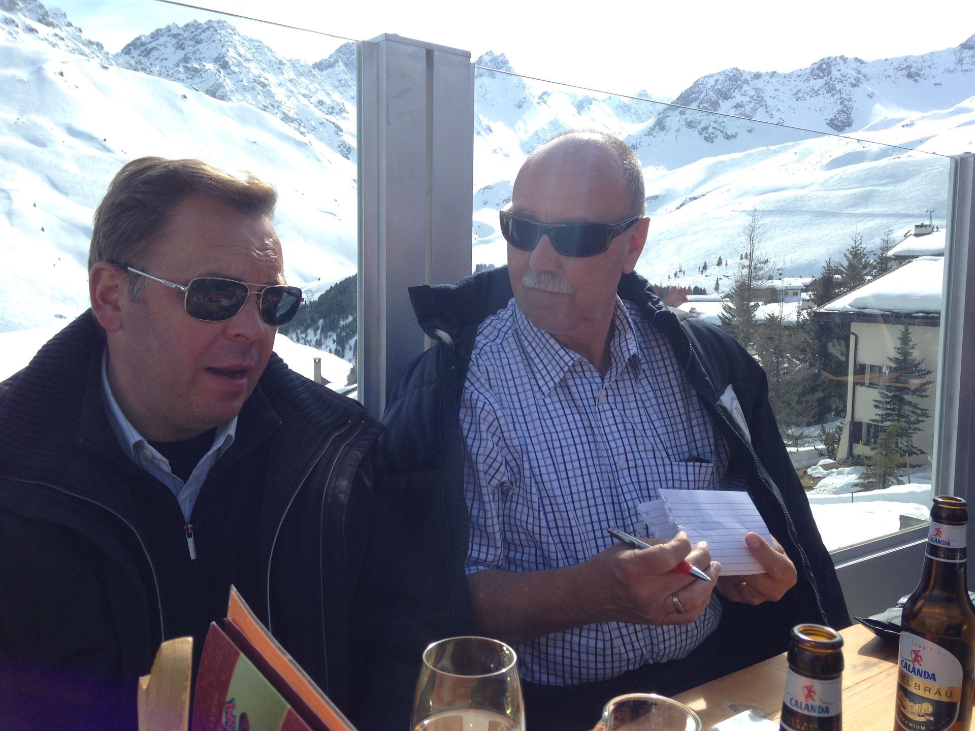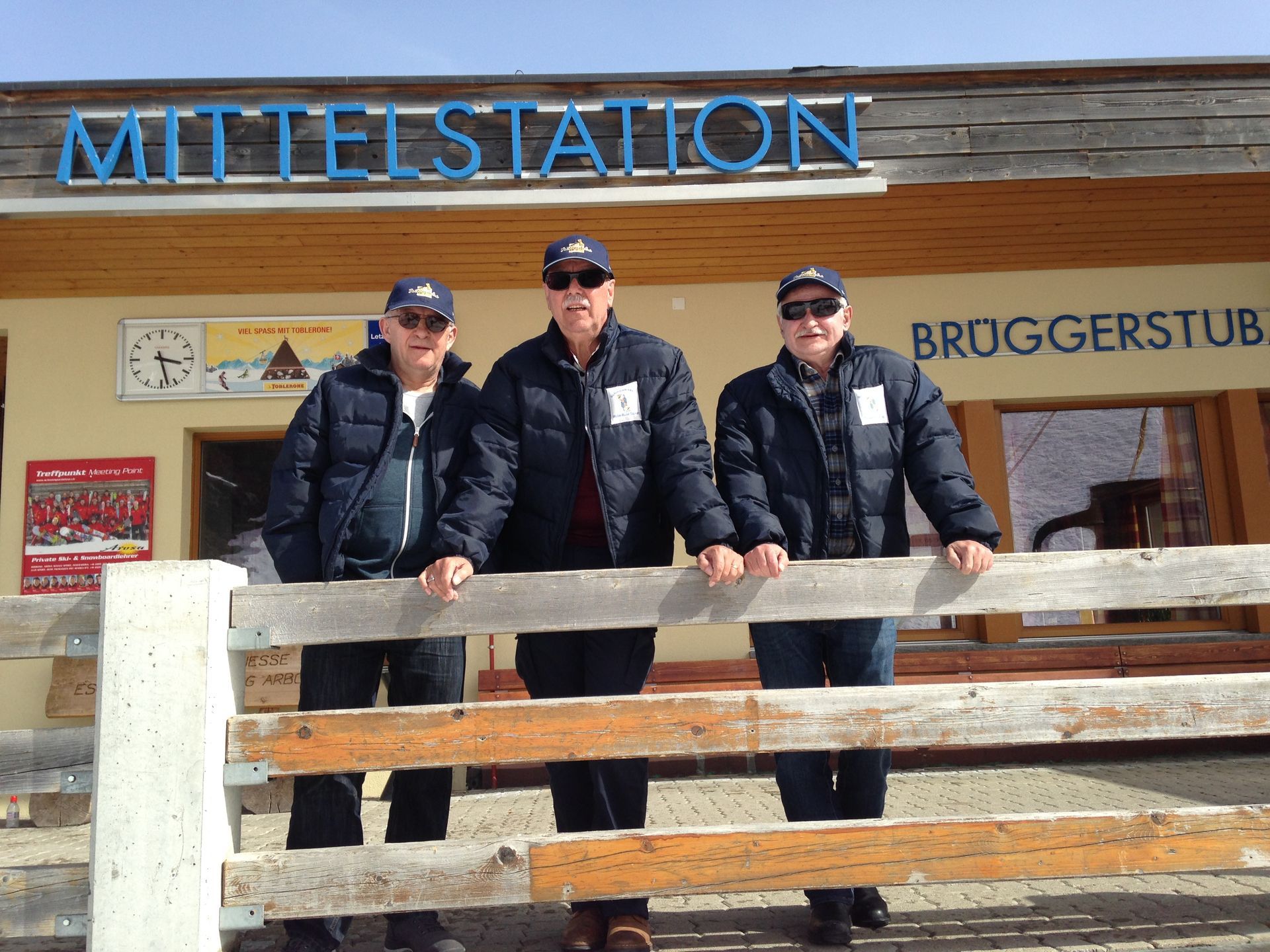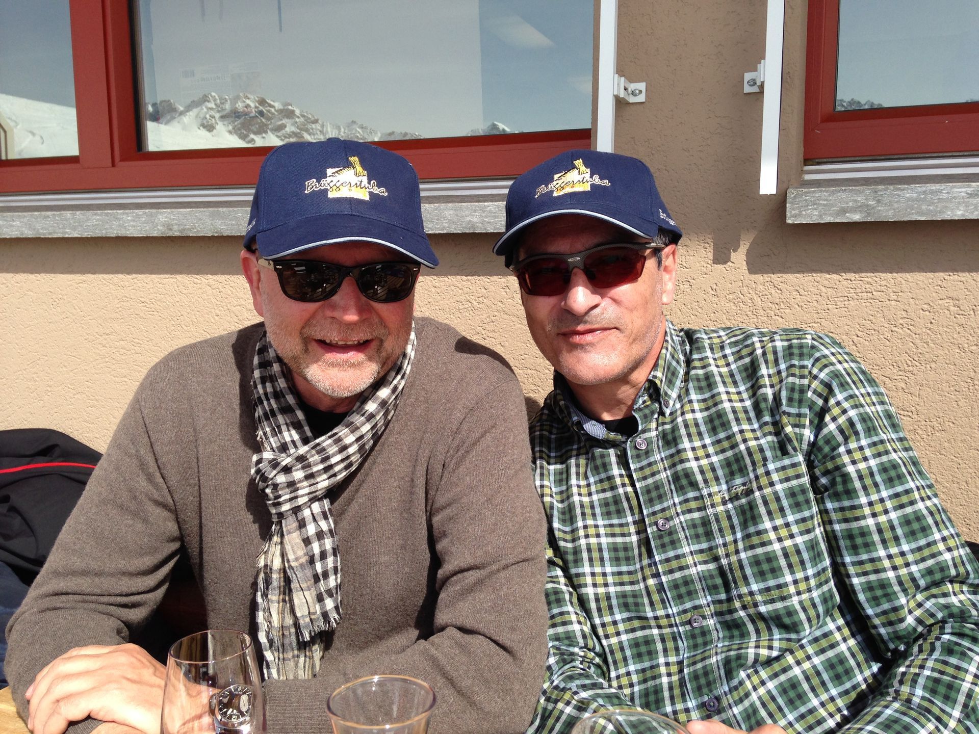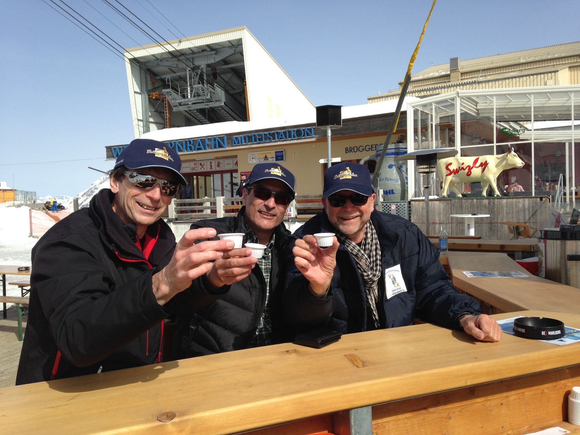 Von einem Abreisemontag keine Spur, „Speedy“ Hsws dank Sherpa Präsi um 9.00 Uhr auf der Piste, Luci wollte noch sein Retour- Billet vom Vortag einlösen, was misslang und so traf man sich zum gemütlichen Mittagessen auf der Terrasse der „Brüggerstuba“. Ein Privat-Setting von Hsws bei unserem Büsiater, vom Prostata-App von Dr. Vogel über die Grundfosspumpe zur Röteli Runde so näherte man sich dem Höhepunkt. Dazwischen der Serviettentrick von Stökker welcher jedem eine schöne Kappe bescherte und dann die Ueberredungskünste für die vierfach Schlussrunde beim 6 er Schälle….das war dann „Top of Arosa“ und die grosse Frage an Präsi „Vladi“ wie viel gibt 4x 33????