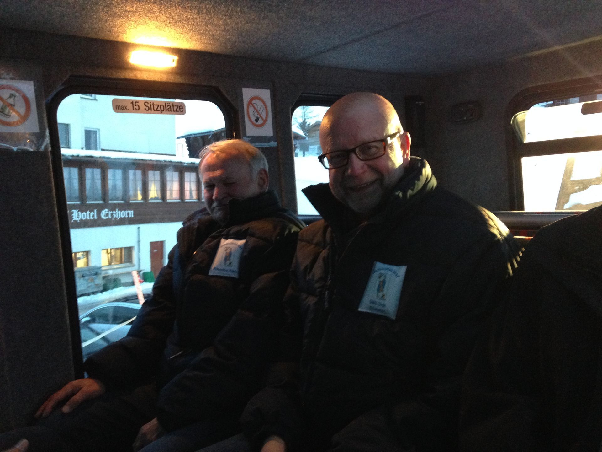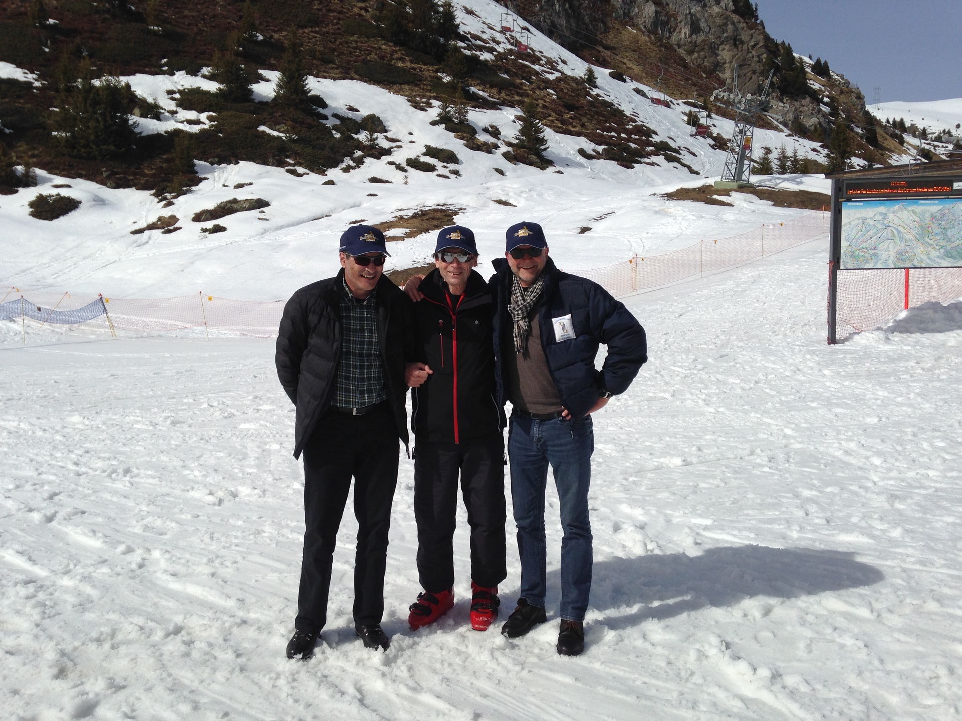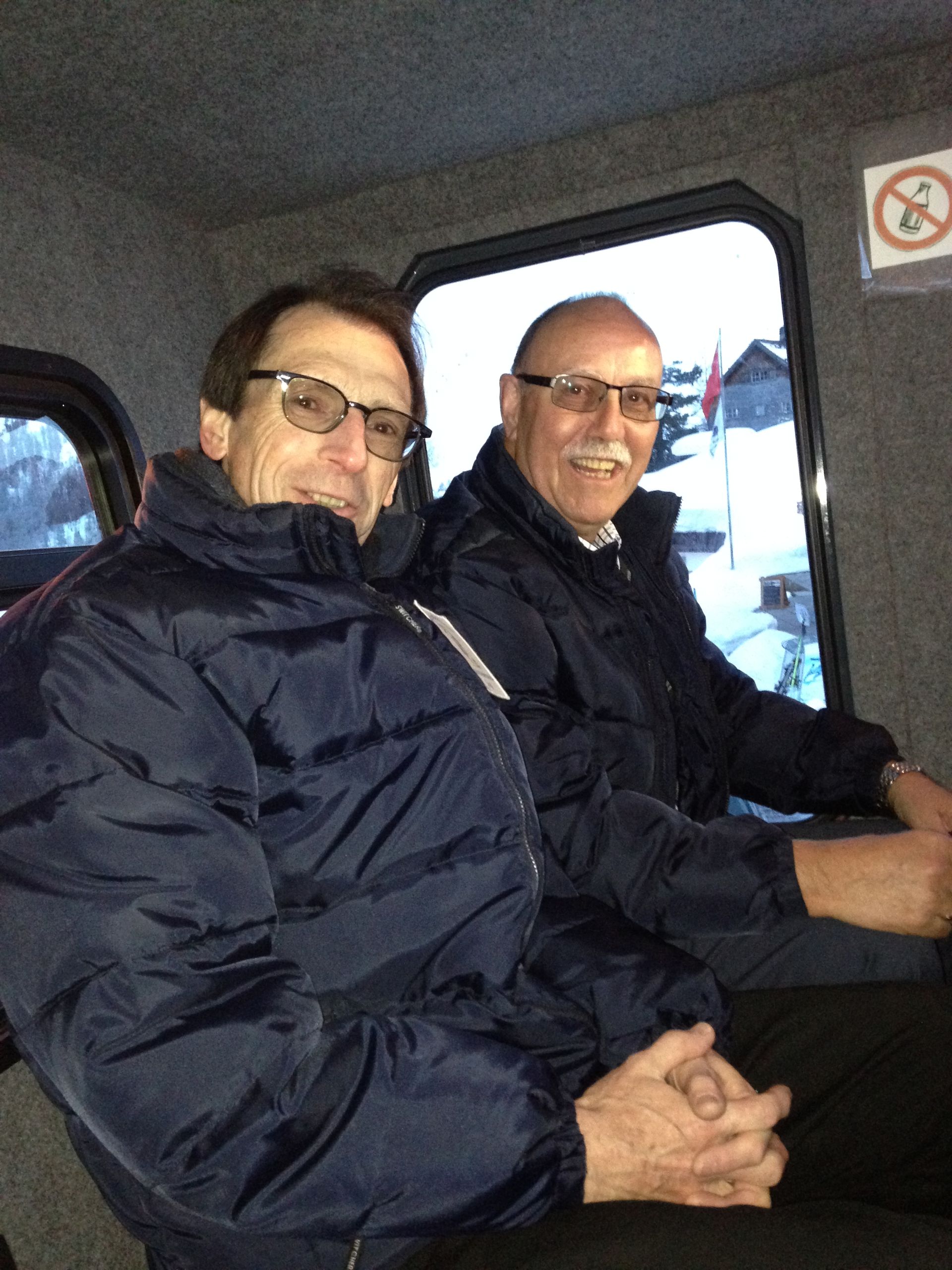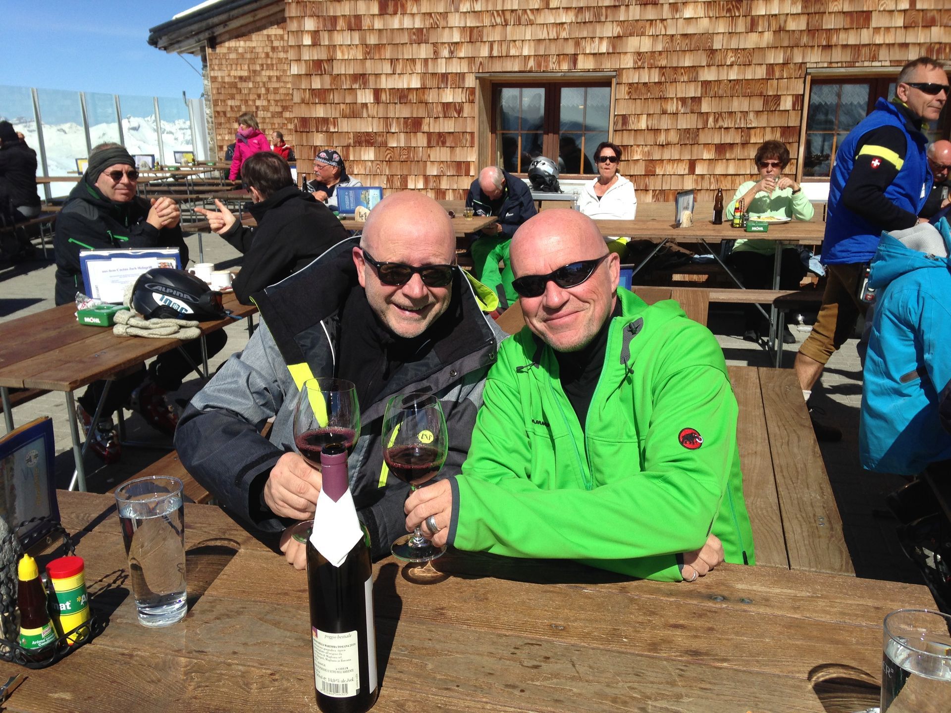 Von einem Abreisemontag keine Spur, „Speedy“ Hsws dank Sherpa Präsi um 9.00 Uhr auf der Piste, Luci wollte noch sein Retour- Billet vom Vortag einlösen, was misslang und so traf man sich zum gemütlichen Mittagessen auf der Terrasse der „Brüggerstuba“. Ein Privat-Setting von Hsws bei unserem Büsiater, vom Prostata-App von Dr. Vogel über die Grundfosspumpe zur Röteli Runde so näherte man sich dem Höhepunkt. Dazwischen der Serviettentrick von Stökker welcher jedem eine schöne Kappe bescherte und dann die Ueberredungskünste für die vierfach Schlussrunde beim 6 er Schälle….das war dann „Top of Arosa“ und die grosse Frage an Präsi „Vladi“ wie viel gibt 4x 33????