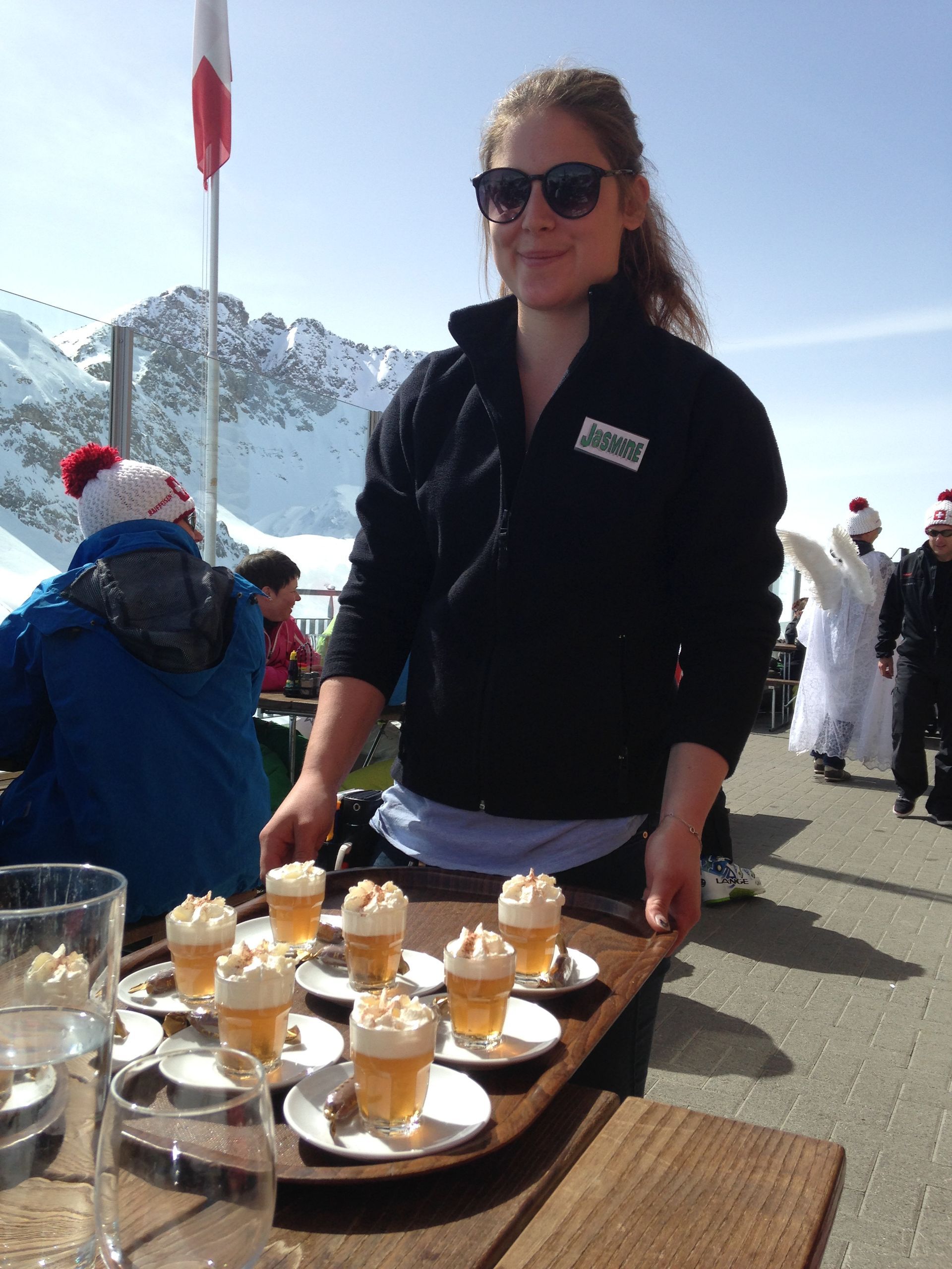 Die Wartezeit bis zur Abfahrt der Gondel wurde nicht von allen gleich genutzt, es gab noch 3 x Röteli im Mayo Becherli (unauffällig serviert).