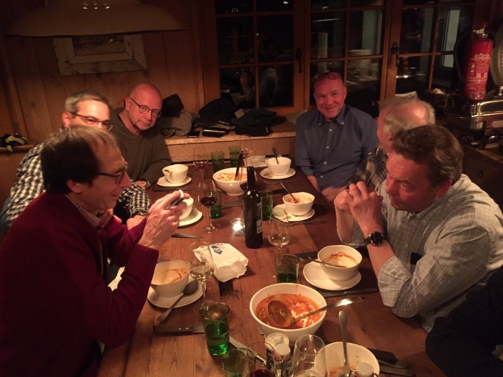 führte zum Zusammentreffen der ganzen Bande und unserem, schon jahrelang angekündigten Ehrengast Erich „Richi“ Untersander. Wie immer wurden alte Geschichten aufgewärmt, die wenigen Skifahrer gingen wieder auf die Piste und die ersten Jassrunden
