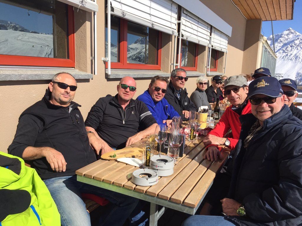 „Richi“ kam auch noch einmal wie verabredet zum Apéro, nach verschiedenen Skifahrversuchen trafen sich dann zum Mittag wieder alle in der Brüggerstube, wo wir unsere Skiköniginnen feiern konnten, unsere helle Freude hatten am jagenden Alex und dem herzigen Rösli, und auch wieder gejasst wurde!