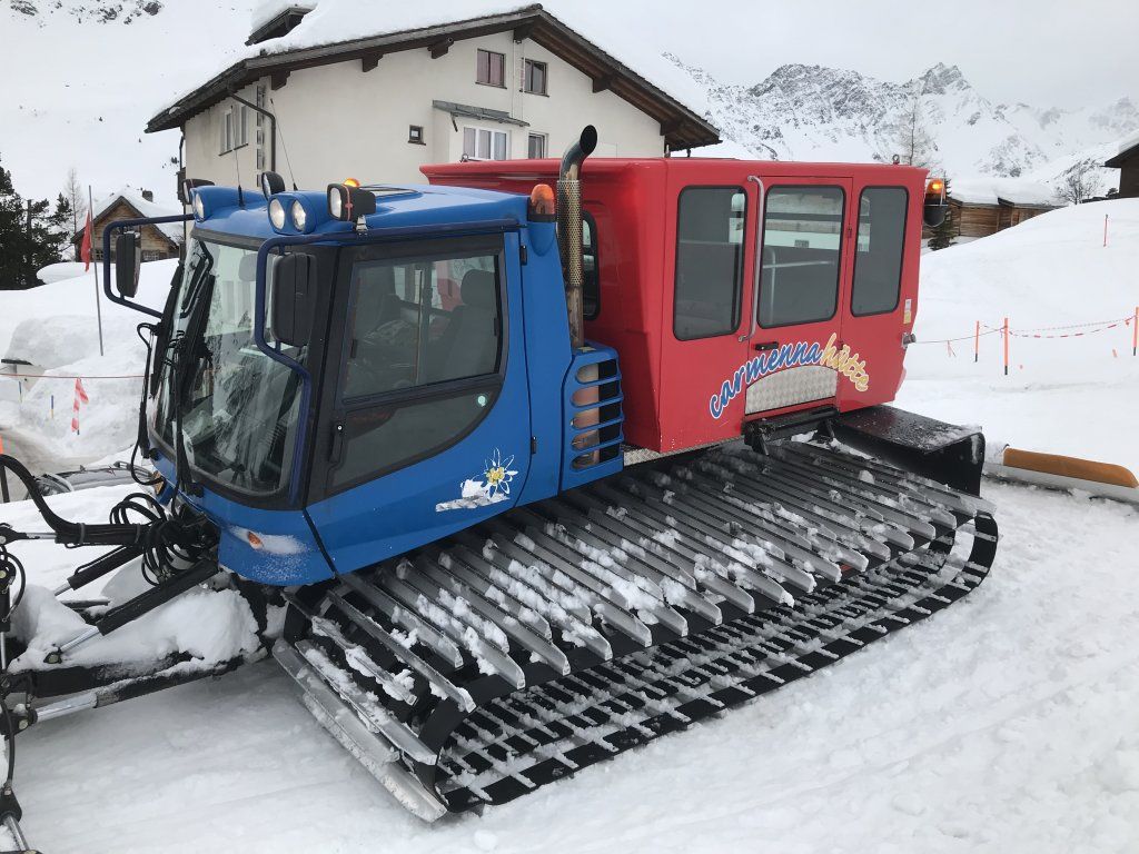 Der Wetterbericht stimmte drum ging`s per Ratrac in die Carmenna Hütte, der Ratrac roch etwas streng, nicht nach Diesel sondern K…e, unsere neue Bekanntschaft Beatrice Egli hat sich später darum gekümmert.