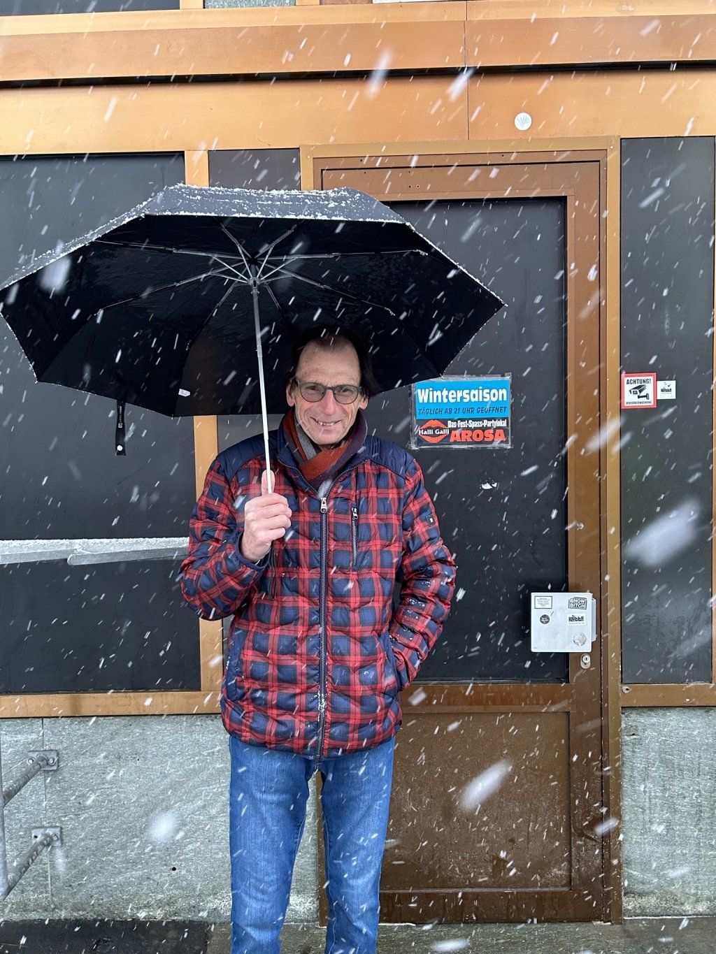 Noch etwas Musik aus dem Zimmer 214... «Sie hat mich tausendmal betrogen»……dann wurde der Marsch zur Alp Arosa unter die Füsse genommen, nach äusserst seriösem Apéro in der Tschuggenhütte, im Schneefall weiter zum Ziel und welch eine
